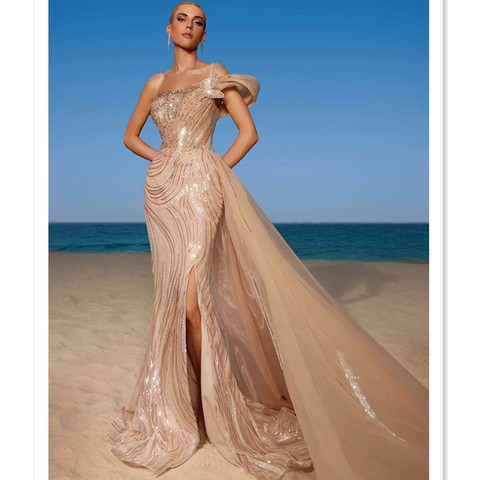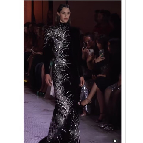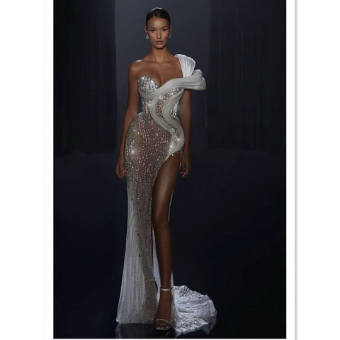 ชุดราตรียาวปักเลื่อมสำหรับปาร์ตี้ไนท์คลับแฟชั่นรันเวย์ของคนดังที่สง่างาม