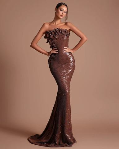 ชุดเดรสเดินยาวสำหรับปาร์ตี้ไนท์คลับสุดหรูมีเลื่อม